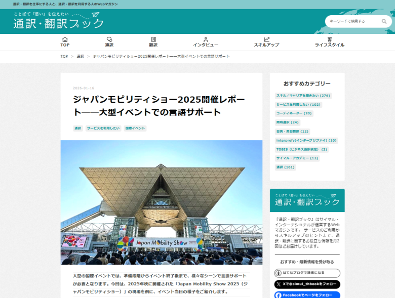 Webマガジン『通訳・翻訳ブック』に記事「ジャパンモビリティショー2025開催レポート」を掲載しました