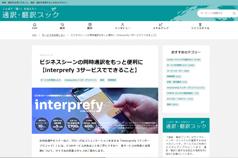Webマガジン『通訳・翻訳ブック』に記事「ビジネスシーンの同時通訳をもっと便利に【interprefy 3サービスでできること】」を掲載しました